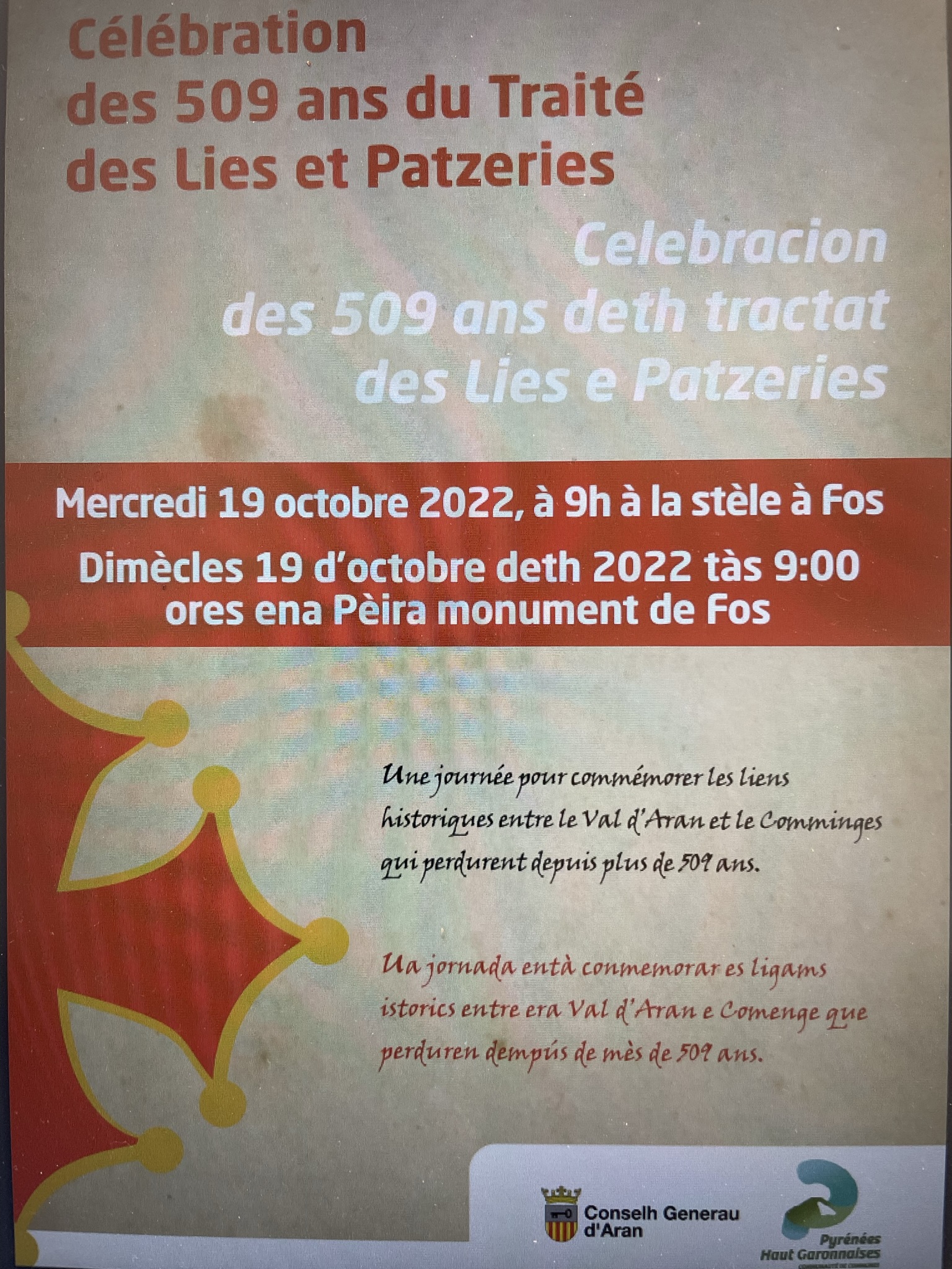 La Communauté de Communes Pyrénées Haut Garonnaise, commémorera le 509ième anniversaire du traité « Lies et Passeries ».