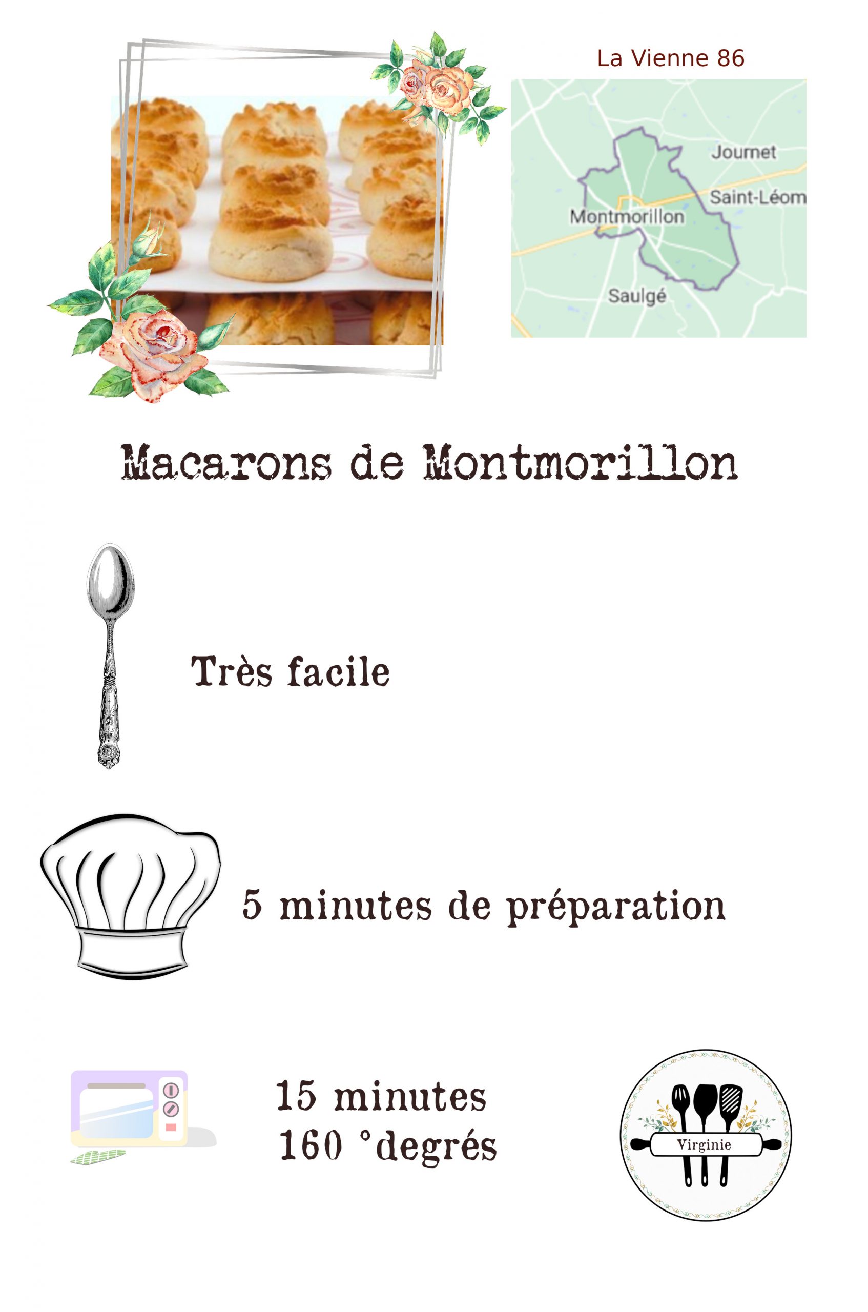 Cette recette de macaron est idéale après la période de l’épiphanie car il nous reste toujours un peu d’amandes en poudre. Une recette facile et rapide. J’avais envie de vous faire découvrir ma région (mon ancienne région, car mon cœur est ici à présent). Virginie.