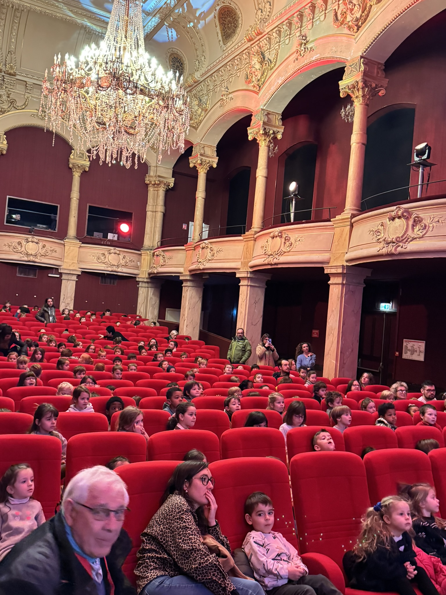Premier Jour, première heure, projection documentaire au Rex, Ciné-Concert avec « Petite Taupe » au théâtre du Casino. Cinéma muet commenté et accompagné en musique avec Arthur Guyard. 560 élèves venus des quatre coins du haut Comminges. Des écoles de Luchon, maternelle et primaire. Toutes les écoles du territoire de la Communauté de Commune Haut Garonnaise. Une partie des collégiens de la Cité scolaire de Luchon.