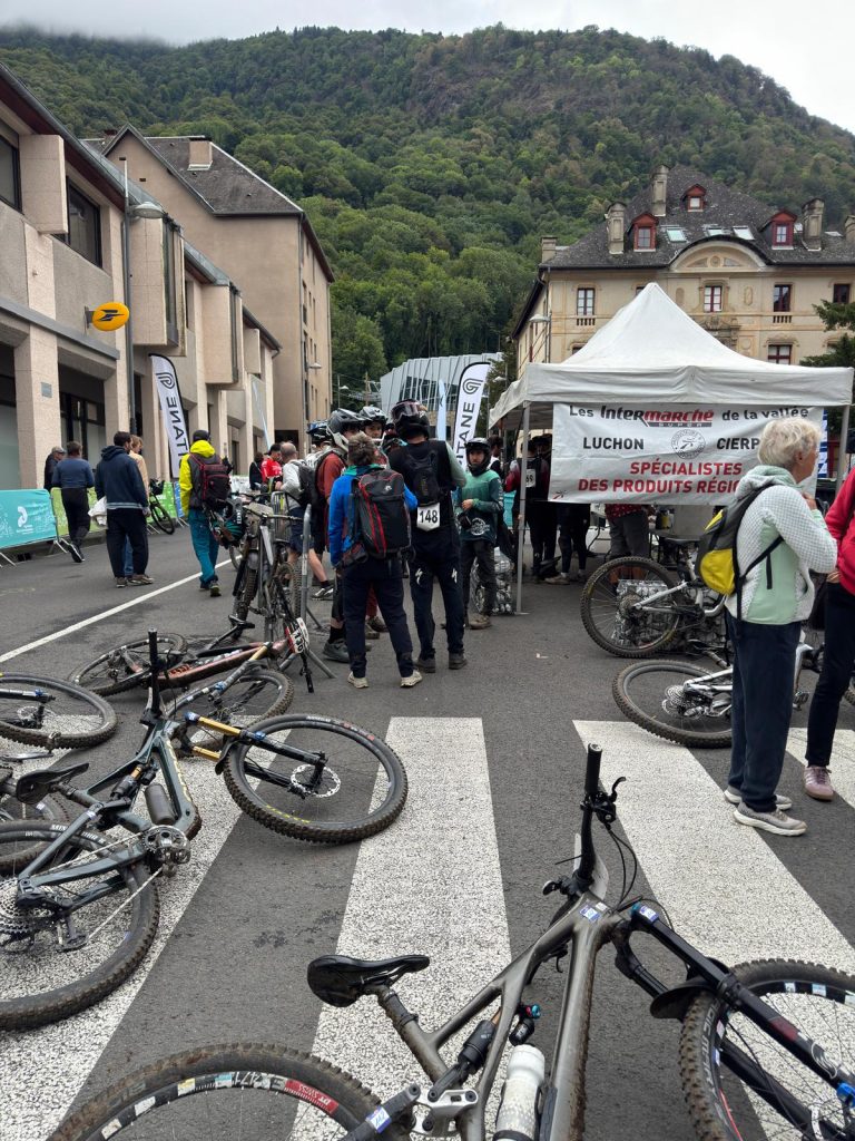 Bravo aux organisateurs en premier au Club Local le Luchon Louron Cyclisme. Il y avait beaucoup de monde en cette fin d’après midi au square Lauret aux pieds de la Crémaillère Express, en plein cœur de la ville. La buvette le stand de ravitaillement ont été pris d’assaut par les 350 coureurs venus de toute la France. Des badauds étaient là, amusés de voir tout ce remu ménage…Jean-Marc un passant : « C’est extraordinaire ce mélange de population, tous ces vététistes au milieu de la foule, ils sont en compétition, mais ils semblent très relax…Luchon fait trés jeune aujourd’hui.!.(rires) »