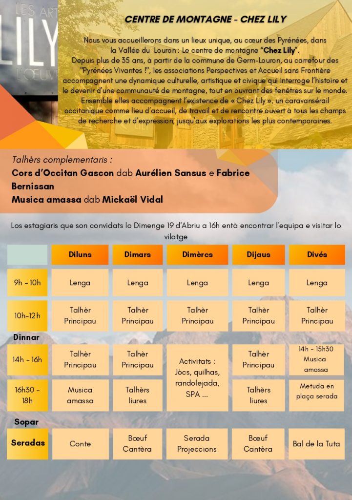 Des cours d’Occitan Gascon seront dispensés tous les matins pendant une heure.