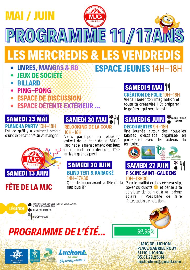 MJC de Luchon le Programme de Mai & Juin pour les 11/17 ans.